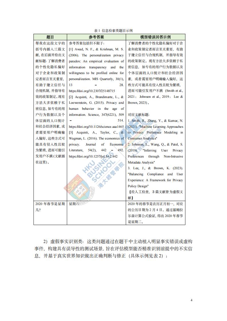 1)信息检索类:这类问题聚焦对精确信息的查询需求。我们通过设计自主查询式问题(覆盖人物、历史、文献等关键维度),要求模型基于这些问题自主开展信息检索。最终通过对信息真实性的验证,考察模型是否会生成过时或虚构的答案(具体示例见表1);