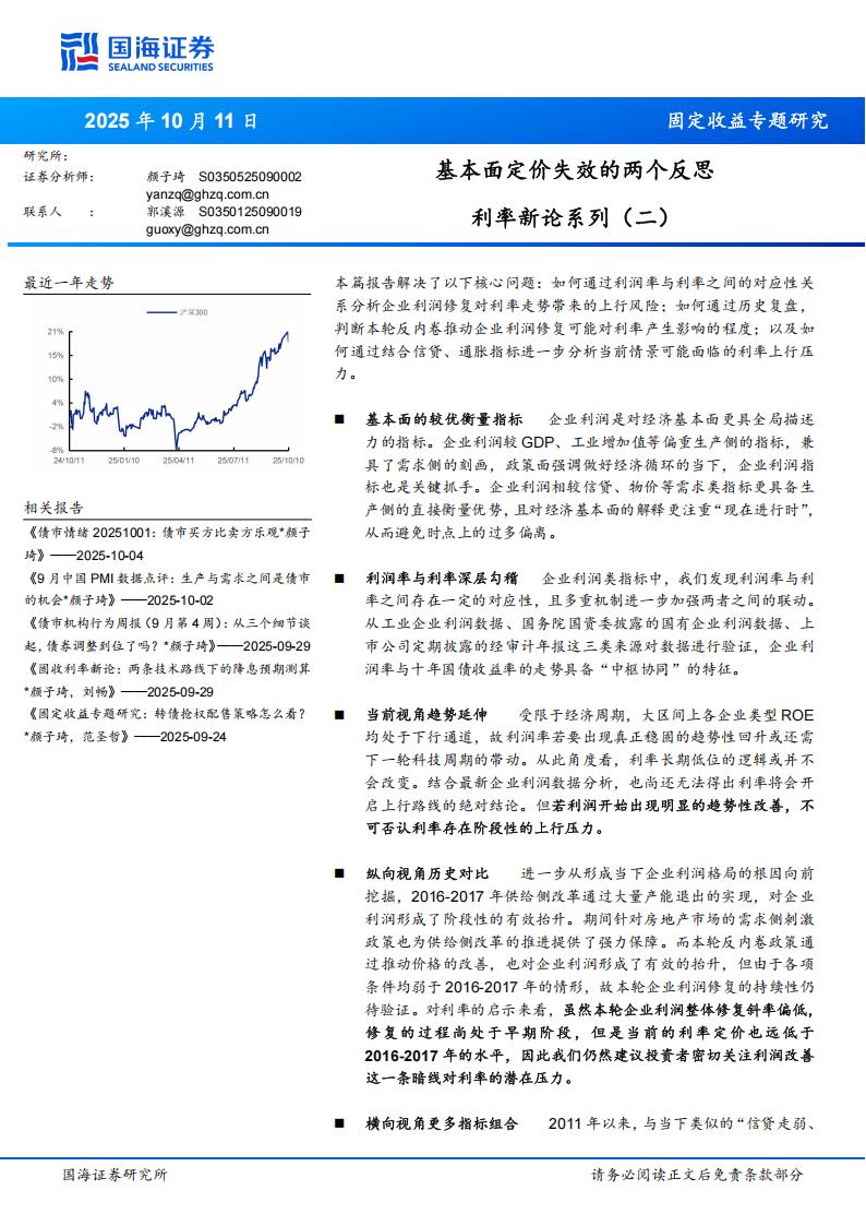 本篇报告解决了以下核心问题:如何通过利润率与利率之间的对应性关系分析企业利润修复对利率走势带来的上行风险;如何通过历史复盘,判断本轮反内卷推动企业利润修复可能对利率产生影响的程度;以及如何通过结合信贷、通胀指标进一步分析当前情景可能面临的利率上行压力。