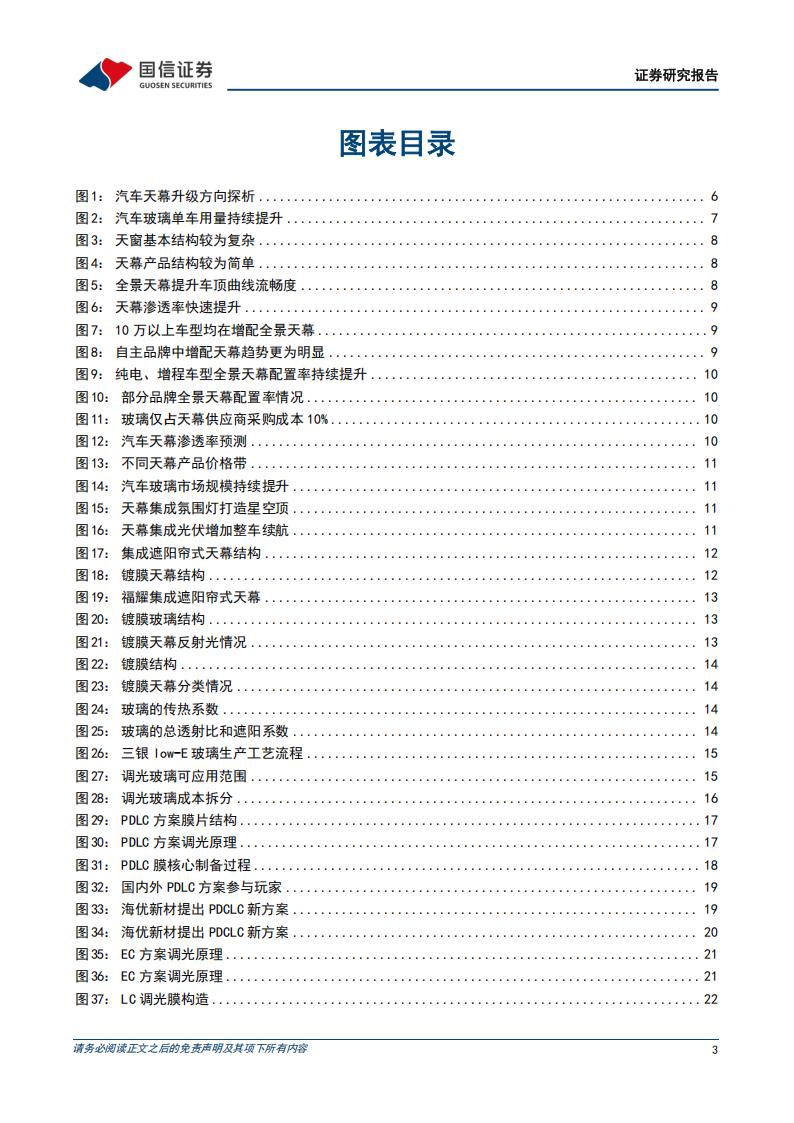 回顾我们2020年7月10日发布的《量变与质变,汽车玻璃添灵魂》深度报告及后续12月发布的《岚图FREE重磅发布,智能调光玻璃普及加速》等系列点评,我们创造性提出传统天窗带来的高温、高辐射、无遮蔽性从技术上获得可解决方案(隔热解决温度问题、镀膜解决紫外线问题,智能调光解决私密性问题)后,有望加速量产,同时提出智能调光、玻璃天线等为人车交互类产品概念。本篇行业深度报告进一步定量分析天幕后续发展变化空间,梳理天幕进一步升级几种方向、分析不同技术路线差异、并对行业核心玩家展开阐述。