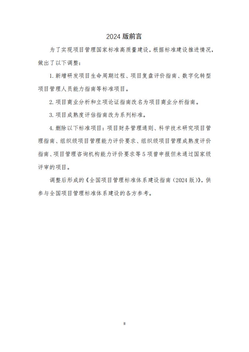 调整后形成的《全国项目管理标准体系建设指南(2024版)》,供参与全国项目管理标准体系建设的各方参考。