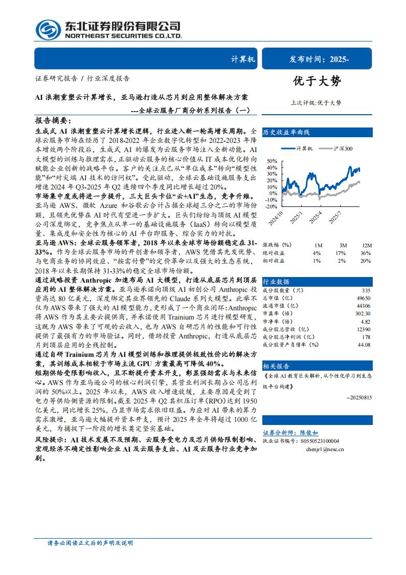 风险提示:AI技术发展不及预期、云服务受电力及芯片供给限制影响、宏观经济不确定性影响企业AI及云服务支出、AI及云服务行业竞争加剧。
