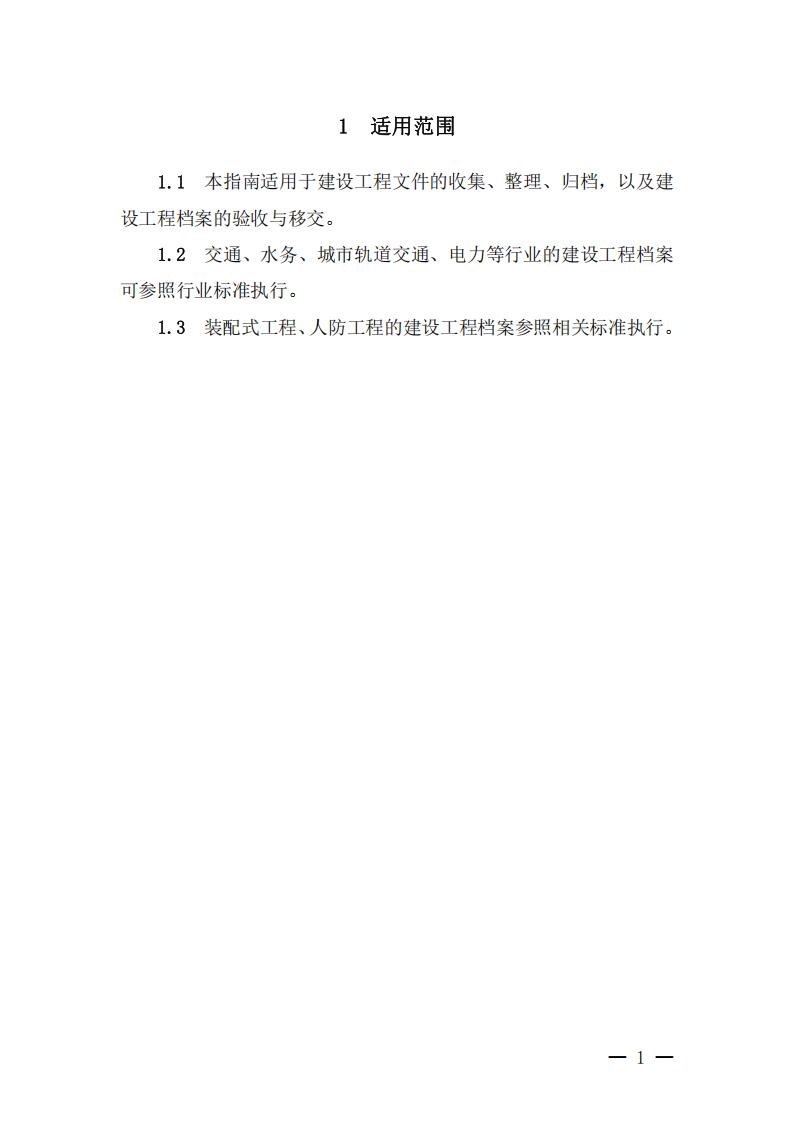 1.1本指南适用于建设工程文件的收集、整理、归档,以及建设工程档案的验收与移交。