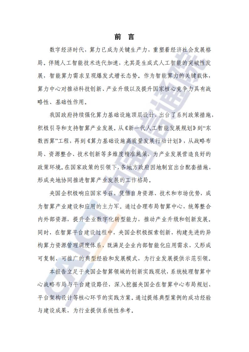 本报告立足于央国企智算领域的创新实践现状,系统梳理智算中心战略布局与平台建设路径,深入挖掘央国企在智算中心布局规划、平台架构设计等核心环节的实践方案。通过提炼典型案例的成功经验与建设成果,为行业提供系统性参考。