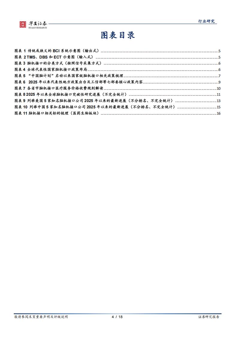 2016年“十三五”规划以来,中国首次将“脑科学与类脑研究”列为国家重大科技创新项目和工程,标志“中国脑计划”启动,融入全球脑机接口政策浪潮。虽起步较晚,但近十年间中国脑机接口政策密集出台,技术迭代不断突破。截至2025年,我们认为中国脑机接口发展已进入产业落地阶段:1)设定发展目标。2025年7月,工信部等七部委颁布《关于推动脑机接口产业创新发展的实施意见》,明确提出2027年和2030年的总体目标和发展路径,强调形成产业集群,拉动供给侧。2)单独立项收费。2025年3月,国家医保局发布《神经系统类医疗服务价格项目立项指南(试行)》,专门为脑机接口项目实施收费,湖北、浙江、江苏、广东、上海等地均发布脑机接口相关医疗服务价格,推动支付端。3)形成行业标准。2025年9月,国家药监局正式发布YY/T 1987—2025《采用脑机接口技术的医疗器械术语》,首次构建了脑机接口医疗器械的术语体系,明确了国家标准。