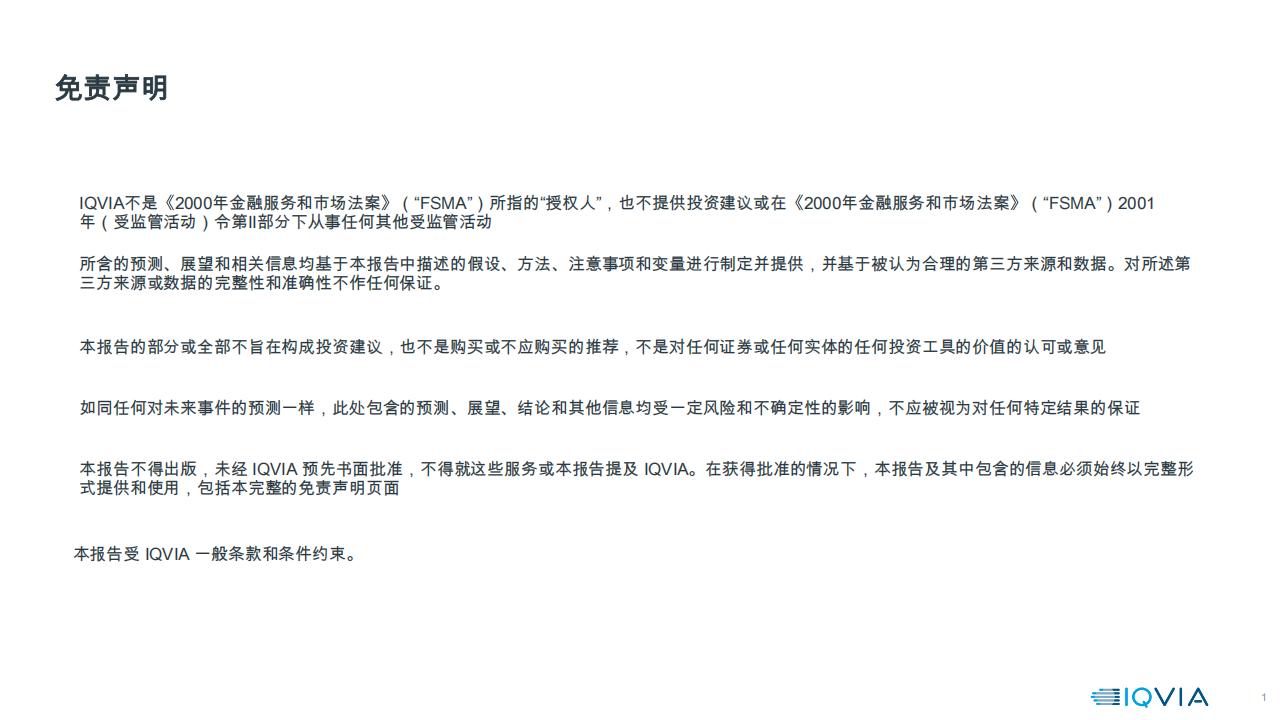 本报告不得出版,未经IQVIA预先书面批准,不得就这些服务或本报告提及IQVIA。在获得批准的情况下,本报告及其中包含的信息必须始终以完整形式提供和使用,包括本完整的免责声明页面