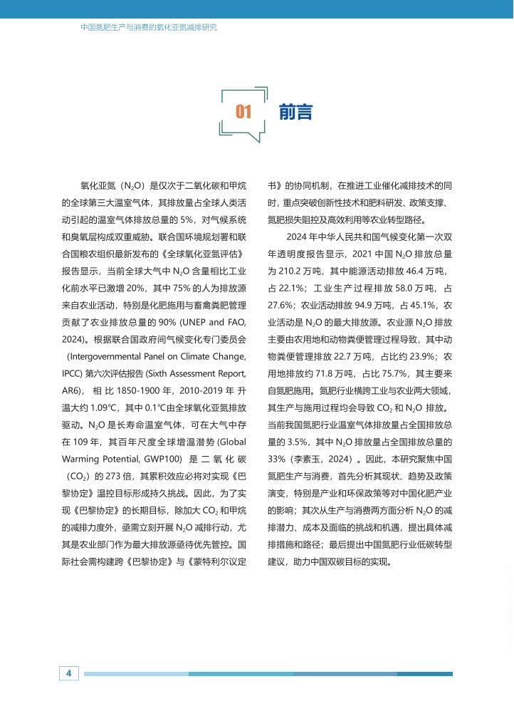 氧化亚医(NO)是仪次手二氧化和甲院的全球第三大温室气体,其排放量占全球人奥活动引的温室气体排放总量的5%,对气候系统和奥乳层构成双重蓝池,联合国环墙规划国和联合国粮农坦织最新发布的《全球氧化亚氮评估》报告里示,当啪全球大气中N/0含量相比工业化萌水平已浙增20%,其中75%的人为排放源来自表业活动,特别是化肥施用与畜商兰肥管理匝献了农业排放总量的90%QUNEP and FAO024],糊据联合国政府闯气候变化专门委员会lIragowmenal Panelan Cimate Cange.IPCQ)第六次评估报告Sbh Aasessment HeportA56J,相比1850-1900年,20102D19年升温大约1.09C,其中0:1℃由全球氧化亚氟排放驱助,NO是长奉命温室气体,可在大气中存在109年,其百年尺度全球增温潜势(GlobalWarming Poterntial GWP100是二氧化魏(CO₃)的273倍,其家相效应必怖对实现《把膝协E)温控日标形成持久换战。因此,为了实顾《巴黎悟定》的长期目标,除加大CO₂和甲烷的味摔力度外,绝两立刻开展NO减排行动,尤其星农业部门作为最大排故源里待优先管控。围际社会需构建治《巴黎协定》与《蒙特利你饺定书》的悟同机制,在推进工业催化减排技术的同时,重点实破旗新性技术和配科研发,政第支摩肥损失阳控及高效利用等农业纳蛋路径