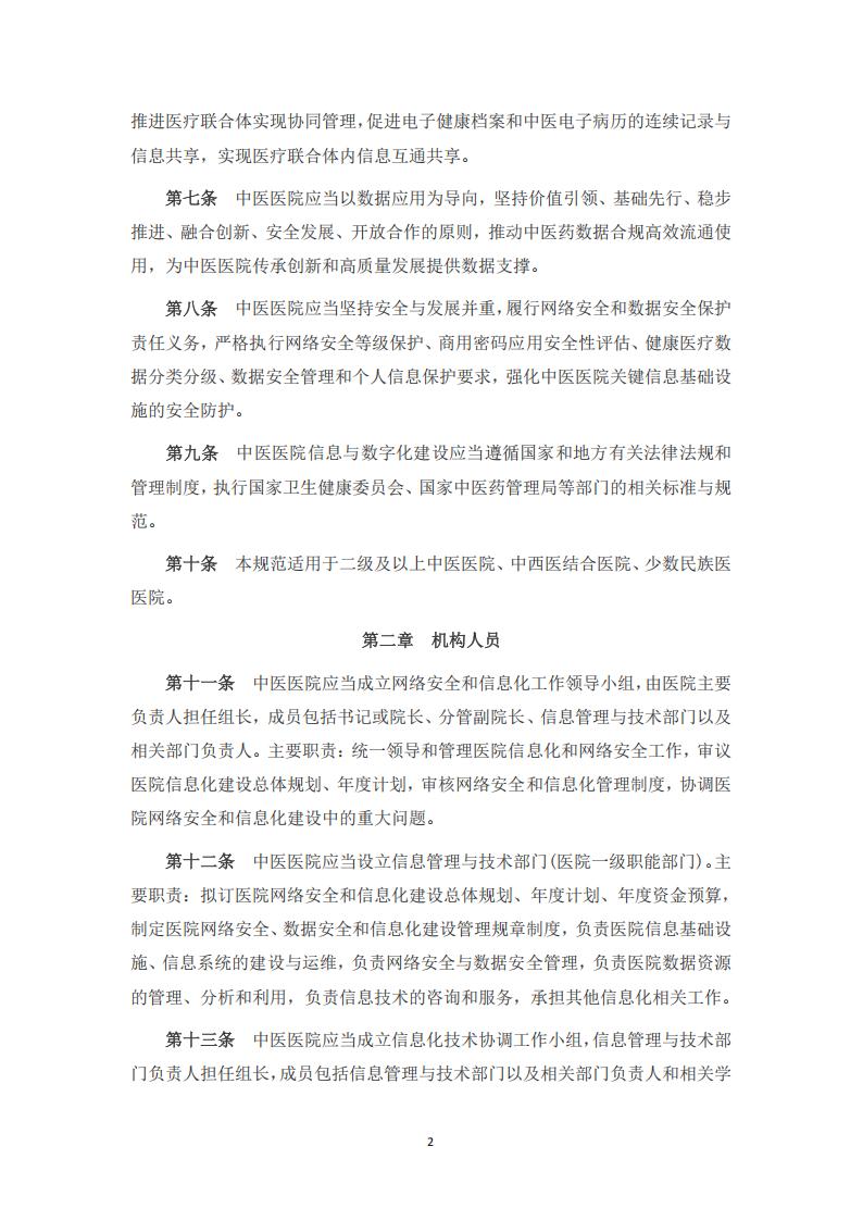 第一条 为加强和规范中医医院信息与数字化建设,提升中医医院智慧化水
