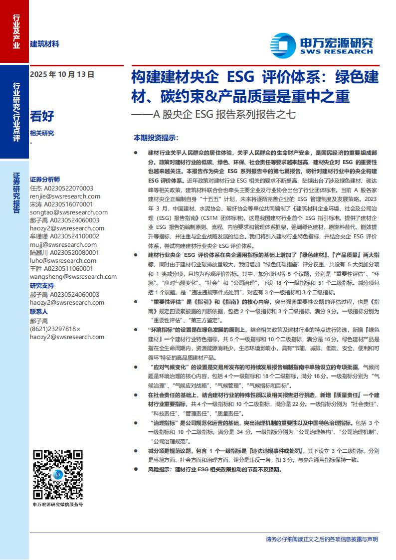 2.构建建材央企ESG评价体系:绿色建材、碳约束&产品质量是重中之重