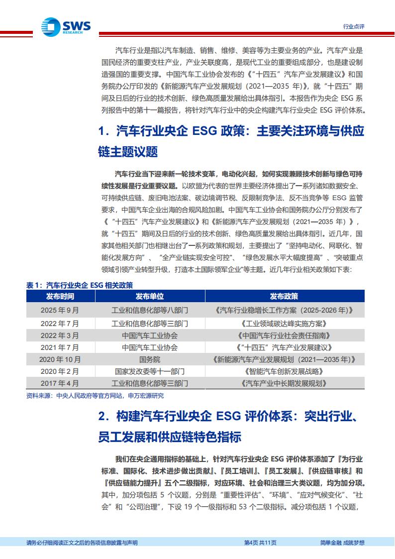 1.汽车行业央企ESG政策:主要关注环境与供应链主题议题