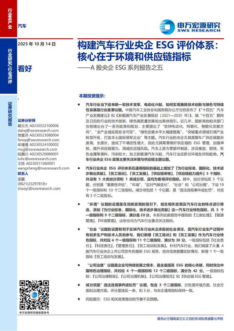 2.构建汽车行业央企ESG评价体系:突出行业、员工发展和供应链特色指标
