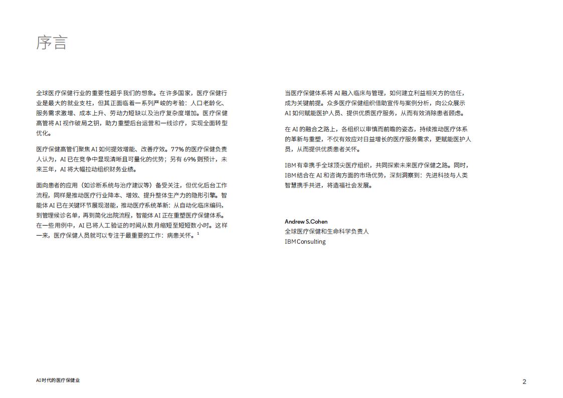 全球医疗保健行业的重要性超乎我们的想象。在许多国家,医疗保健行业是最大的就业支柱,但其正面临着一系列严峻的考验:人口老龄化服务需求激增、成本上升、劳动力短缺以及治疗复杂度增加。医疗保健高管将AI视作破局之钥,助力重塑后台运营和一线诊疗,实现全面转型优化。