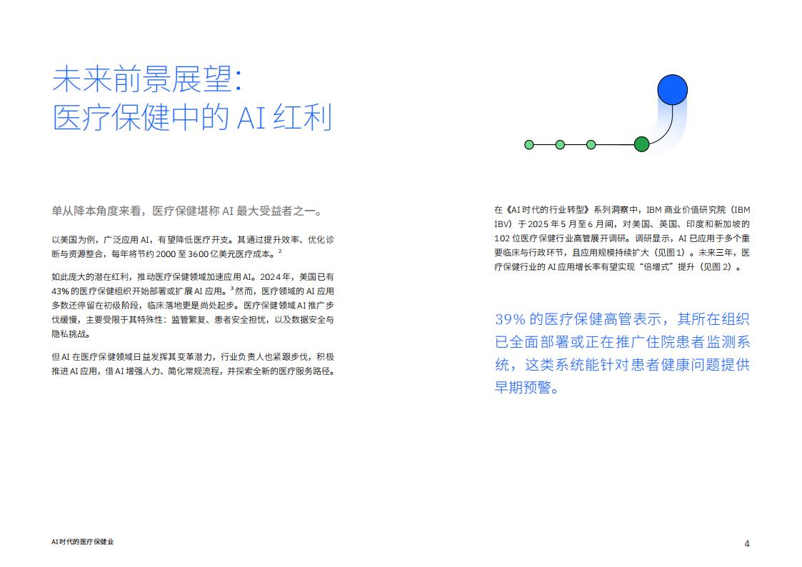 但AI在医疗保健领域日益发挥其变革潜力,行业负责人也紧眼步伐,积极推进AI应用,借AI增强人力、简化常规流程,并探索全新的医疗服务路径。