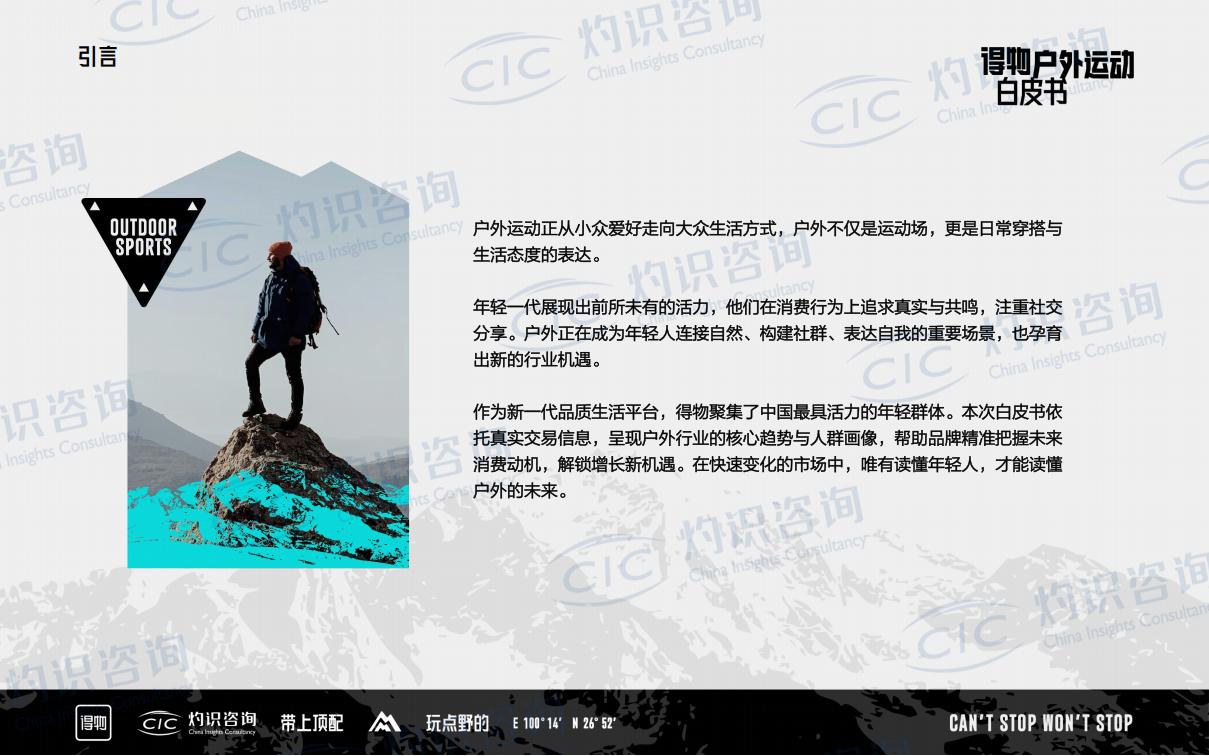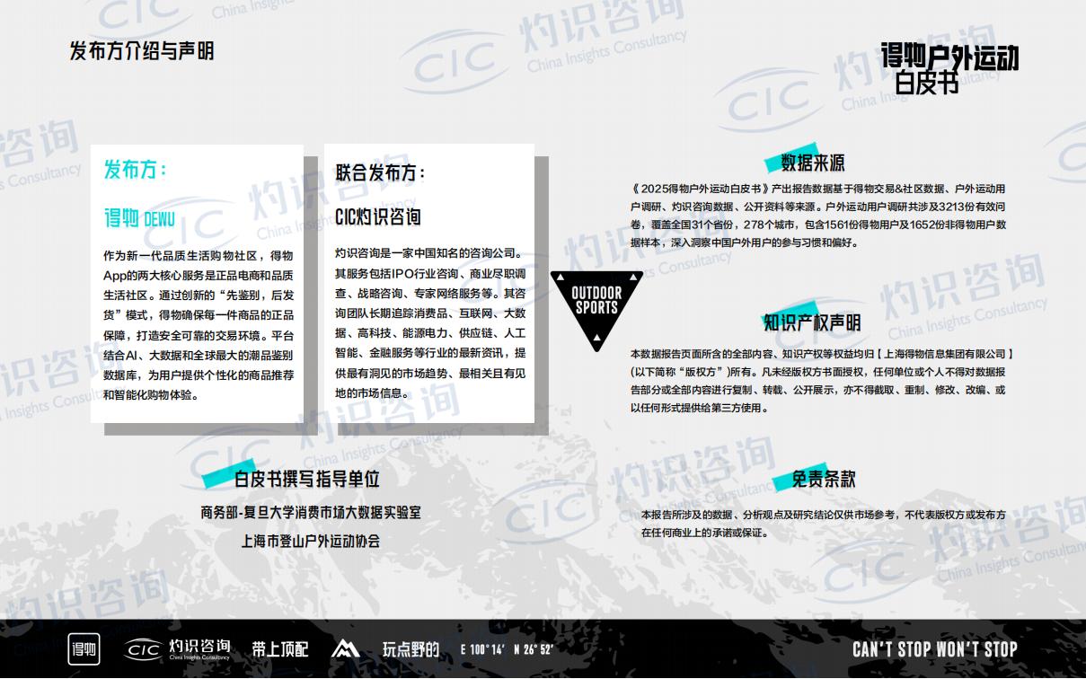 作为新一代品质生活平台,得物聚集了中国最具活力的年轻群体。本次白皮书依托真实交易信息,呈现户外行业的核心趋势与人群画像,帮助品牌精准把握未来消费动机,解锁增长新机遇。在快速变化的市场中,唯有读懂年轻人,才能读懂户外的未来。