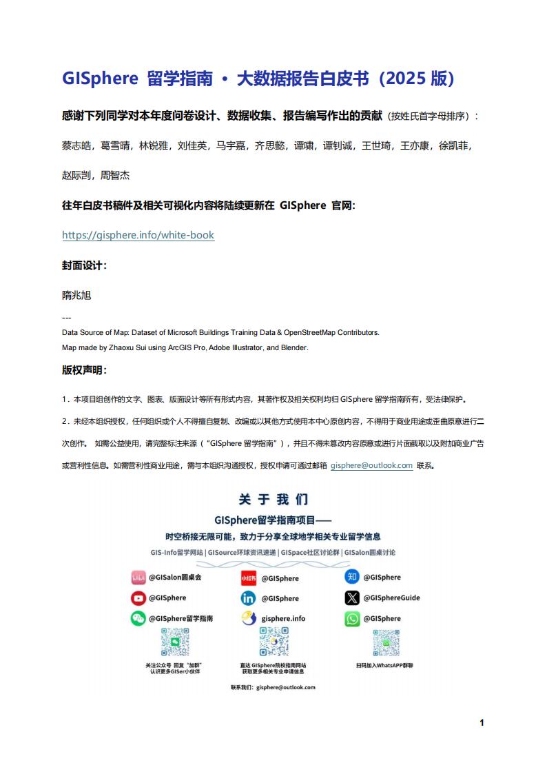 1.本项目组创作的文字、图表、版面设计等所有形式内容,其著作权及相关权利均归GISphere留学指南所有,受法律保护。