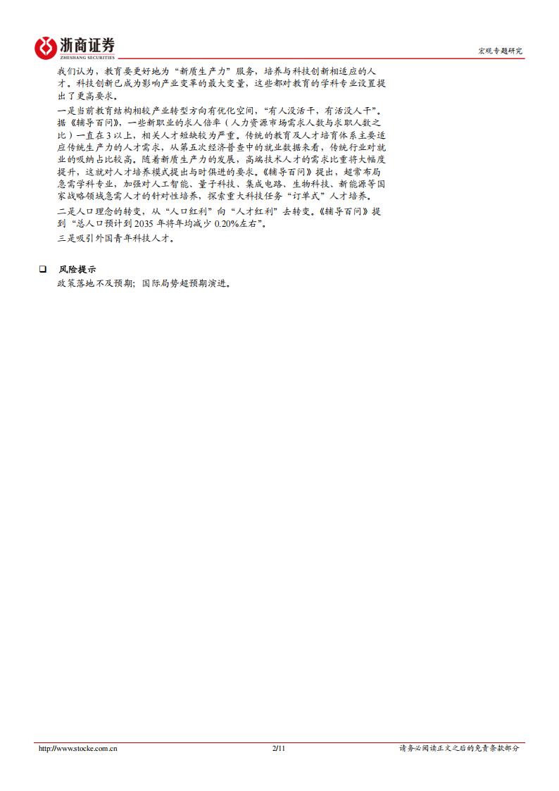 口 四、教育、科技、人才的正向循环我们认为,教育要更好地为“新质生产力”服务,培养与科技创新相适应的人才。科技创新已成为影响产业变革的最大变量,这些都对教育的学科专业设置提出了更高要求。