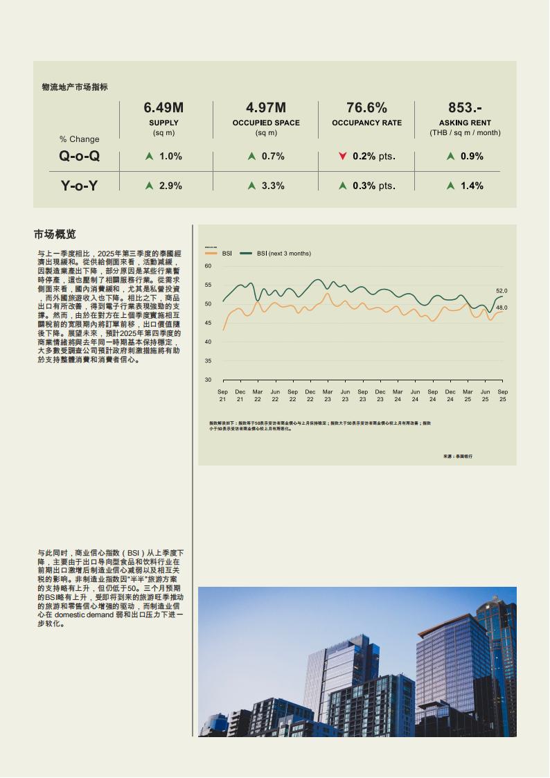 与上一季度相比,2025年第三季度的泰國經濟出現緩和。從供給側面來看,活動减緩,因製造業産出下降,部分原因是某些行業暫時停産,道也壓制了相關服務行業。從需求側面來看,國内消費緩和,尤其是私誉投資,而外國旅遊收入也下降。相比之下,商品出口有所改善,得到電子行業表現強勁的支撐。然而,由於在對方在上個季度實施相互關税前的宽限期内將訂單前移,出口價值随後下降。展望未來,預計2025年第四季度的商業情緒将舆去年同一時期基本保持穏定,大多數受調查公司預計政府刺激措施將有助於支持整體消費和消费者信心。与此同时,商业信心指数(BSI)从上季度下降,主要由于出口导向型食品和饮料行业在前期出口激增后制造业信心减弱以及相互关税的影响。非制造业指数因“半半”旅游方案的支持略有上升,但仍低于50。三个月预期的BSI略有上升,受即将到来的旅游旺季推动的旅游和零售信心增强的驱动,而制造业信心在domestic demand弱和出口压力下进一步软化。