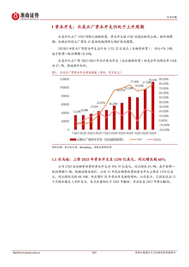 1.1亚马逊:上修2025年资本开支至1250亿美元,同比增长超60%