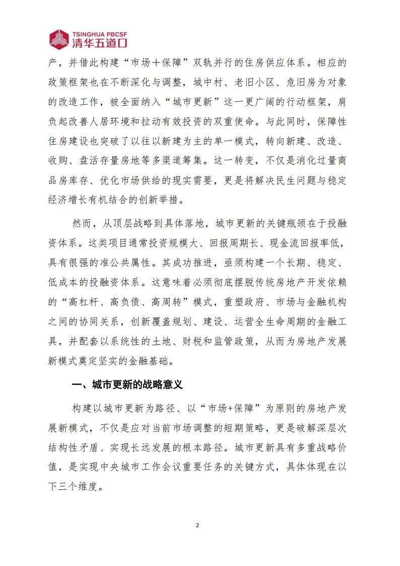 然而,从顶层战略到具体落地,城市更新的关键瓶颈在于投融资体系。这类项目通常投资规模大、回报周期长、现金流回报率低,具有很强的准公共属性。其成功推进,亟须构建一个长期、稳定、低成本的投融资体系。这意味着必须彻底摆脱传统房地产开发依赖的“高杠杆、高负债、高周转”模式,重塑政府、市场与金融机构之间的协同关系,创新覆盖规划、建设、运营全生命周期的金融工具,并配套以系统性的土地、财税和监管政策,从而为房地产发展新模式奠定坚实的金融基础。