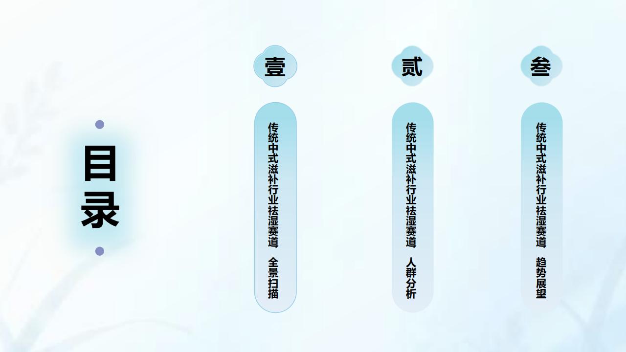 政策、文化与健康需求三重共振,共推传统中式滋补行业祛湿赛道概念蓬勃发展在政策支持、传统文化以及健康需求三重因素共同推动下,传统中式滋补行业的祛湿赛道正蓬勃发展。祛湿作为中医概念,旨在通过草药调理改善疲劳、消化不良等湿气过重症状,满足现代人日益增长的健康消费需求。