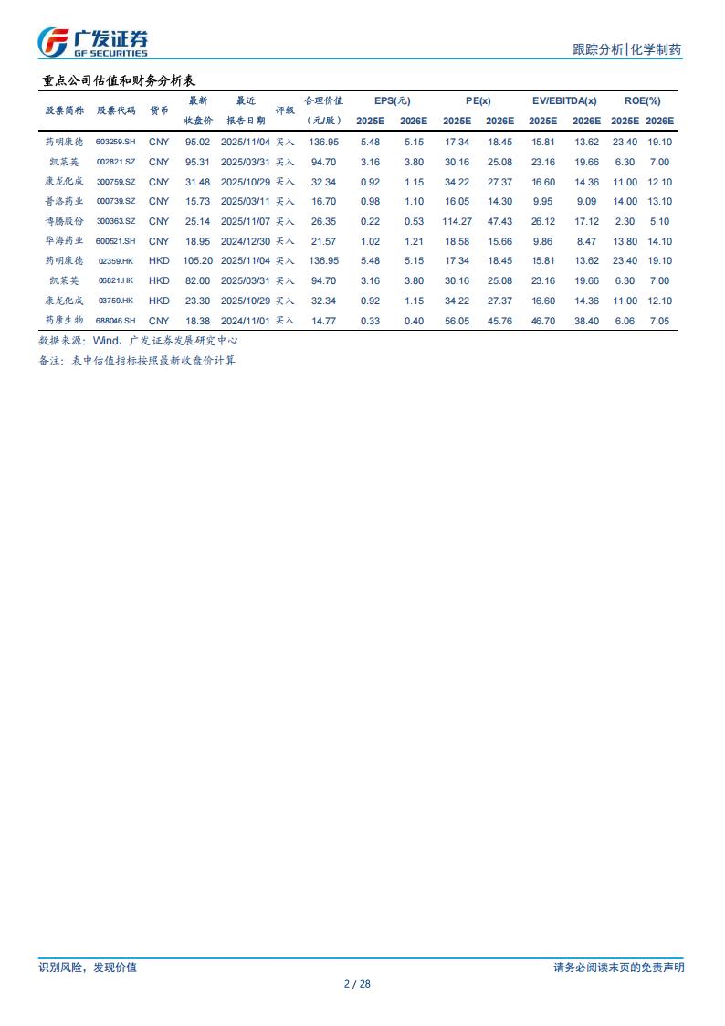 于价格底部+供给过剩的调整阶段,传统品种业绩增长承压,但行业整体扩产周期收尾,部分企业向二三类仿制药、创新药、特色原料药等新业务延伸,未来有望通过业务结构优化实现价值重塑。目前原料药企业估值处于底部区间,重点关注新业务布局变化带来的个股机会。