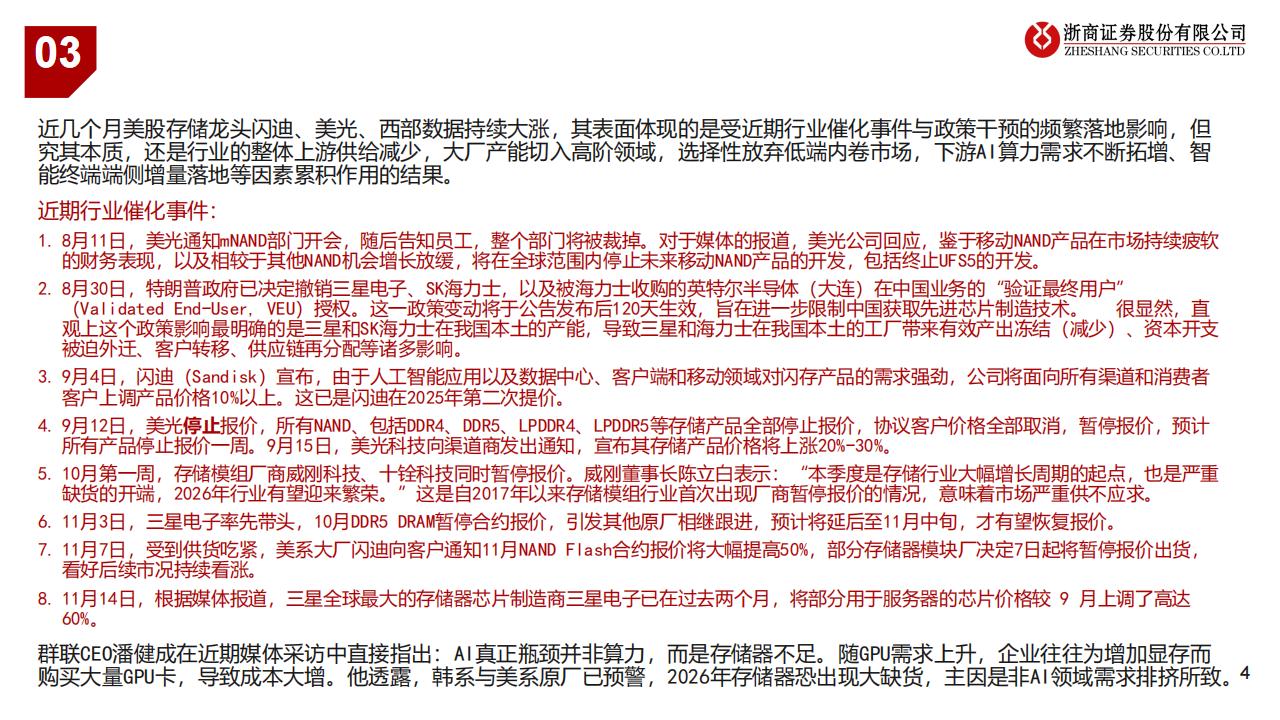 3.9月4日,闪迪(Sandisk)宣布,由于人工智能应用以及数据中心、客户端和移动领域对闪存产品的需求强劲,公司将面向所有渠道和消费者客户上调产品价格10%以上。这已是闪迪在2025年第二次提价。