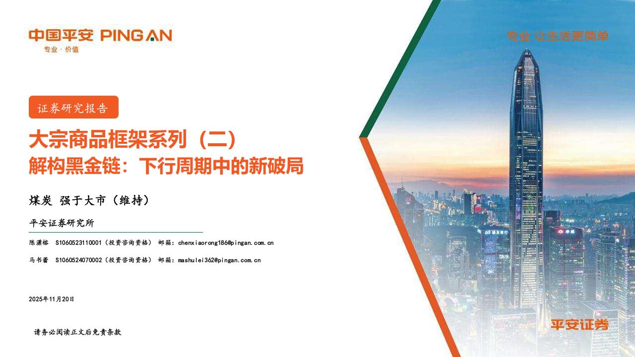 需求端的转变路径:消费增量转向内需制造业和出口新市场。地产影响弱化,制造业占比持续提升:2020年中央经济工作会议首次提及“注重需求侧管理”,标志着新旧时代的交接,经济增长由依赖地产投资逐步转向居民消费和制造业。根据steel,2024年地产用钢量约2.5亿吨、约占粗钢表观消费的28%,较2021年下降约0.75亿吨,结合2501-Q3地产数据,我们预计2025年地产用钢将继续下降约0.36亿吨;而制造业用钢占比不断提升(据Mysteel,占比从2020年的42%提升至2024年的50%),机械、汽车、造船、家电等行业用钢需求保持强劲增长。海外新兴市场高成长,钢材出口需求强劲:2021年以来,国内地产景气下行,虽有制造业用钢需求增长支撑,但钢材整体内需增速仍在转弱,而出口呈现快速增长态势。2020-2024年钢材出口量年复合增速近20%,钢坯出口量年复合增速高达335%。随着“一带一路”建设推进,巴基斯坦、印尼、尼日利亚等新兴市场崛起,对我国钢材进口量显著增加;中东的沙特、阿联酋、土耳其等国对我国钢材需求后劲较足;东南亚的泰国、菲律宾等国制造业正处成长期,制造业用钢进口需求旺盛。投资建议:黑色金属行业随着我国工业成熟化和地产景气下行而进入周期顶弧阶段,供需两端均进入低增长乃至缓步下降期间,但作为传统长生命周期行业,需求具刚性使其不会马上进入衰退期,在该阶段,供需两侧结构的调整和优化反而使行业头部在商品价格下行的阵痛中重新拥有了资产增厚和估值提升的机会。一方面,行业供给过剩将逐步挤出中小落后产能,企业间也将通过兼并整合实现集中度再提升,从而使供给结构得到优化,总量管控、联合减产等措施的实施也将更高效;另一方面,需求侧逐渐摆脱对地产的依赖,消费增量逐步转向制造业和出口,而制造业的高端化有望带动上游煤焦钢行业高质量发展,上下游企业在海外市场的布局有望进一步打开需求025年,供给侧反内卷再次被强调,煤炭和钢铁行业以反超产、安全严监管、提高产能置换比例等措施限制产量无序增长,25H2煤炭供给已呈收缩态势;需求端,虽然主要用于建筑业的螺纹钢需求疲软,但冷热轧、中厚板等制造业相关钢材需求表现强劲,同时钢材出口保持较高增长,使2025年铁水产量和高炉开工维持高位。综上,我们认为黑色金属产业当前估值处于历史中低位,在经历供需两端的逐步调整和转变后,中长期仍然具备配置价值。上游焦煤板块我们建议关注煤矿资源丰富、利润弹性较大的潞安环能、山西焦煤、淮北矿业;铁矿石开采板块建议关注铁矿资源优质、规模领先、积极获取新的富铁矿或其他矿种的金岭矿业、大中矿业、海南矿业;钢铁板块建议关注盈利反弹幅度大和产品结构优化的华菱钢铁、南钢股份,以及受益于高端特钢管材放量和研发PF导管等可控核聚变关键材料的久立特材,有望受益于城市管网改造和雅江水利设施建设的球墨铸管龙头一新兴铸管。