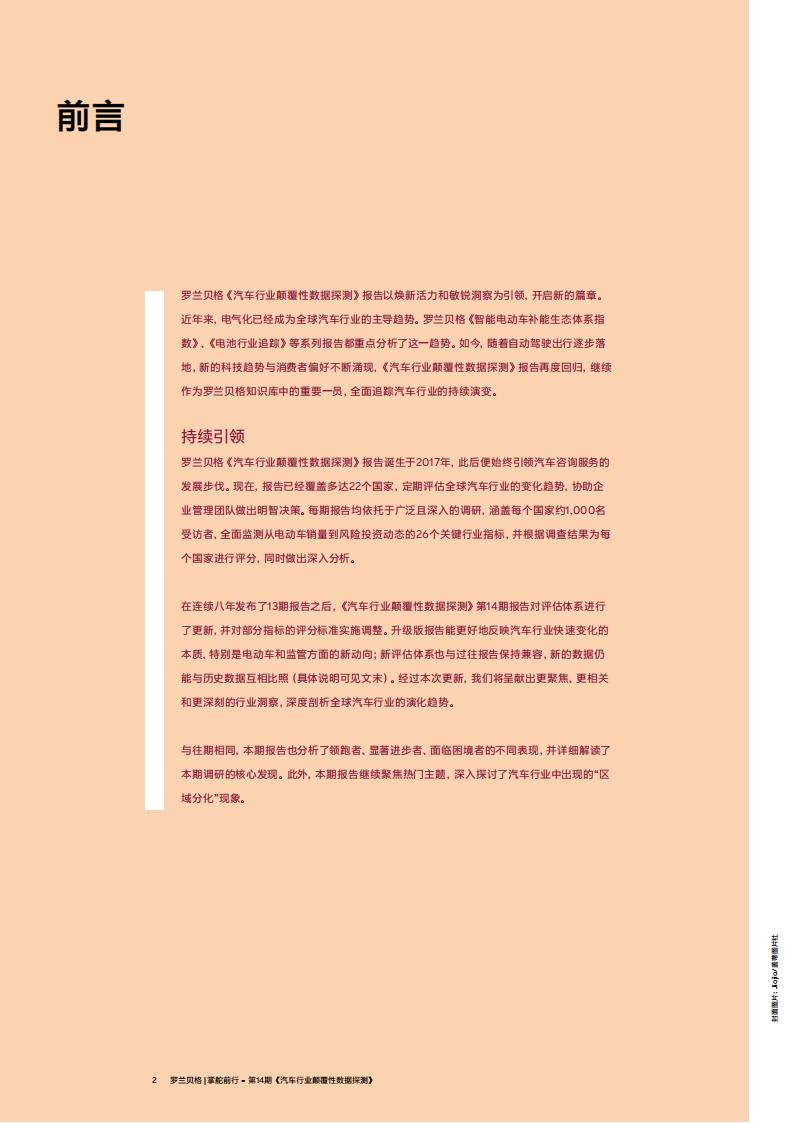 在连续八年发布了13期报告之后,《汽车行业颠覆性数据探测》第14期报告对评估体系进行了更新,并对部分指标的评分标准实施调整。升级版报告能更好地反映汽车行业快速变化的本质,特别是电动车和监管方面的新动向;新评估体系也与过往报告保持兼容,新的数据仍能与历史数据互相比照(具体说明可见文末)。经过本次更新,我们将呈献出更聚焦、更相关和更深刻的行业洞察,深度剖析全球汽车行业的演化趋势。