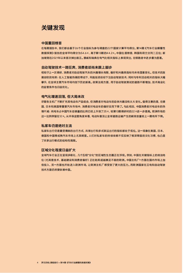与往期相同,本期报告也分析了领跑者、显著进步者、面临困境者的不同表现,并详细解读了本期调研的核心发现。此外,本期报告继续聚焦热门主题,深入探讨了汽车行业中出现的“区域分化”现象。