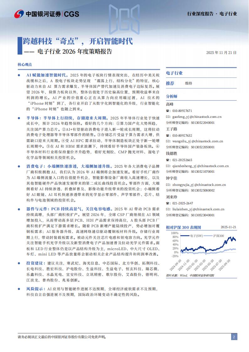 ● AI赋能加速智能时代。2025年的电子板块行情表现突出,在经历中美关税