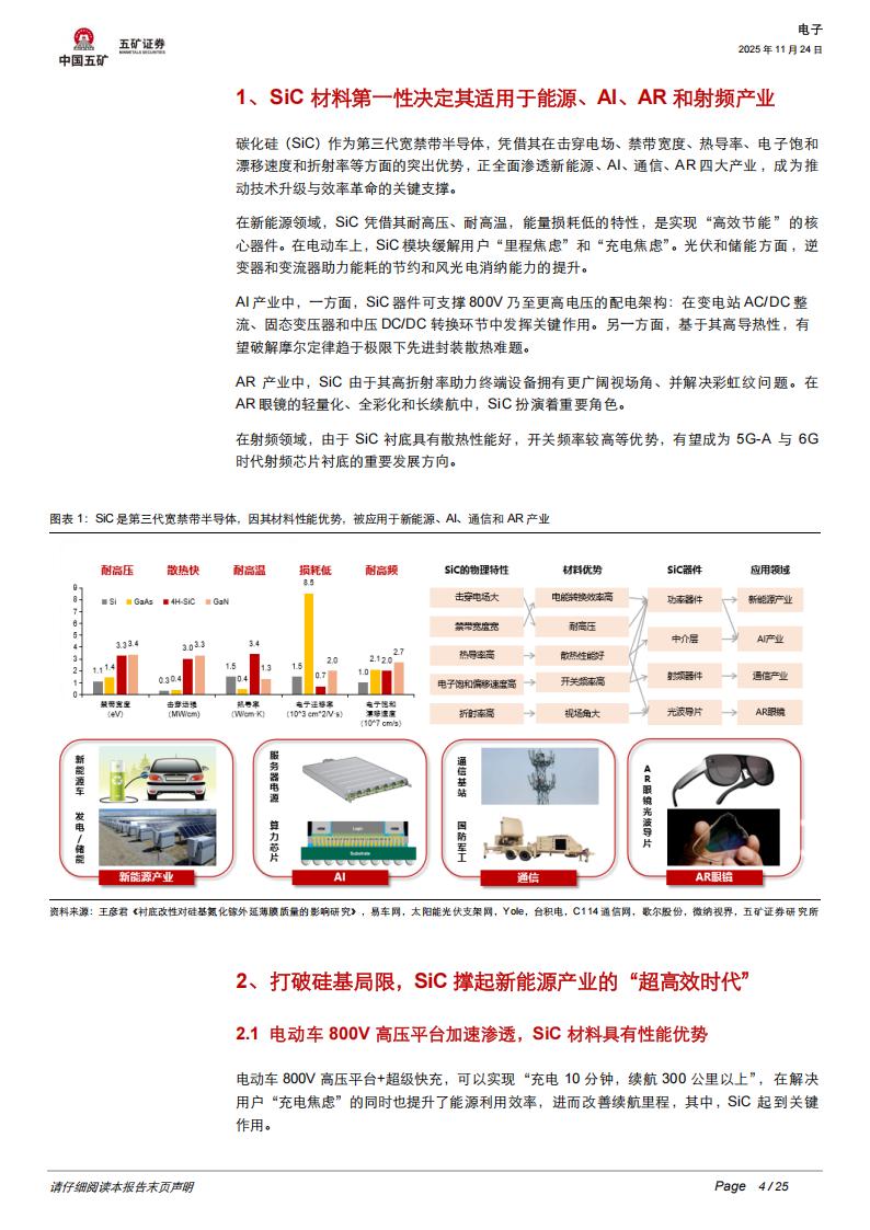 1、SiC材料第一性决定其适用于能源、Al、AR和射频产业