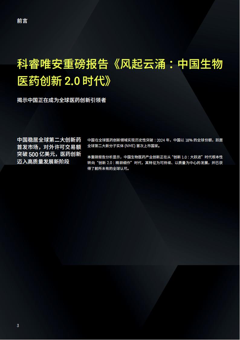 本重磅报告分析显示,中国生物医药产业创新正在从“创新1.0:大跃进”时代根本性转向“创新2.0:精耕细作”时代,其特征为可持续、以质量为中心的发展,并已获得了前所未有的全球认可。