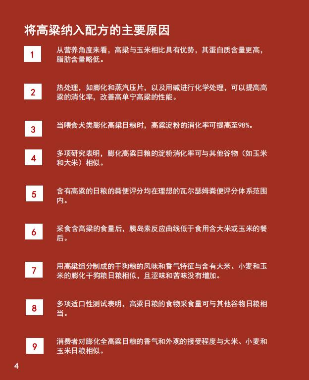 当喂食犬类膨化高粱日粮时,高粱淀粉的消化率可提高至98%。