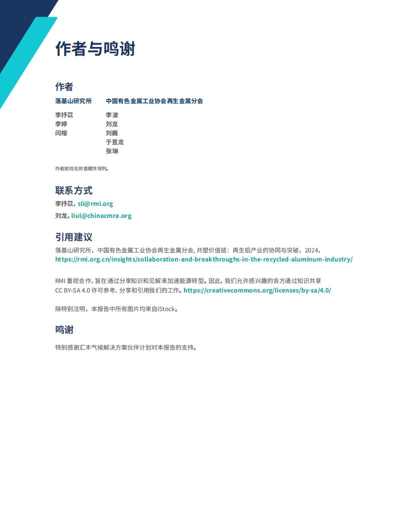 本报告首先对再生铝行业的重要性与发展成果进行了回顾,以帮助读者建立对再生铝行业的整体认知;在此基础上,深入剖析行业实现突破性发展的核心挑战,并总结和评估已有的先进协作模式,探讨这些模式如何在助力企业成长的同时,推动行业发挥更大减碳效能,力求为政策制定、行业规划及企业实践提供参考,推动再生铝行业迈向高质量、低碳、可持续发展。