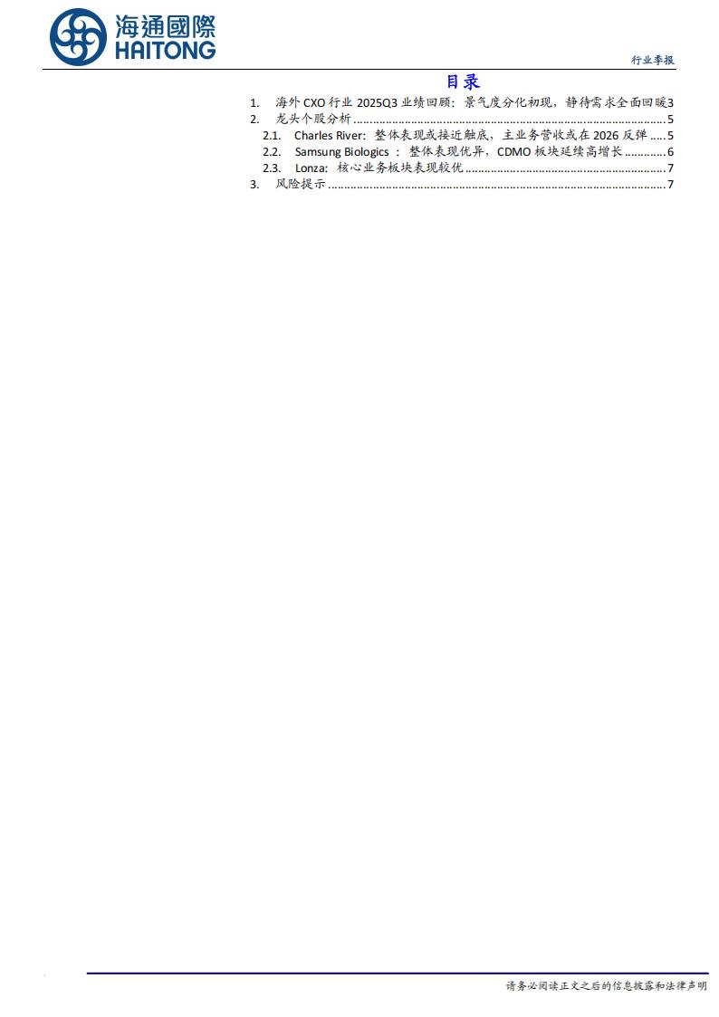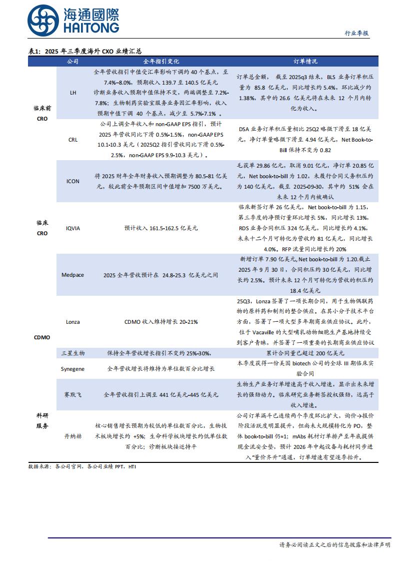 1.海外CXO行业2025Q3业绩回顾:景气度分化初现,静待需求全面回暖