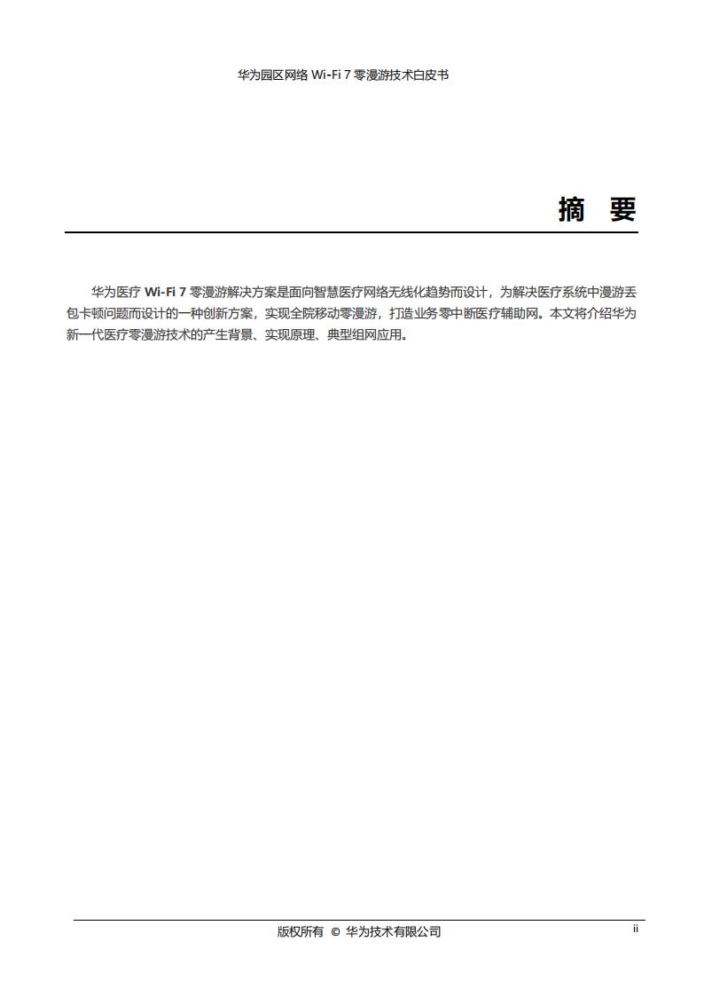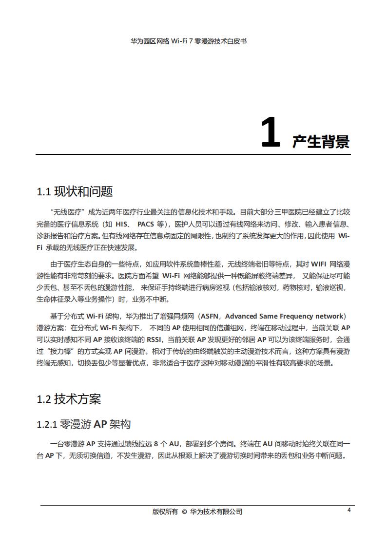 华为医疗Wi-Fi7零漫游解决方案是面向智慧医疗网络无线化趋势而设计,为解决医疗系统中漫游丢包卡顿问题而设计的一种创新方案,实现全院移动零漫游,打造业务零中断医疗辅助网。本文将介绍华为新一代医疗零漫游技术的产生背景、实现原理、典型组网应用。