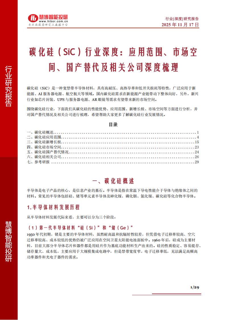 碳化硅(SiC)是一种宽禁带半导体材料,具有高耐压、高热导率和低开关损耗等特性,广泛应用于新能源、AI服务器电源、航空航天等领域。国内碳化硅需求在新能源产业链带动下整体向好,另外,新兴行业如芯片封装、UPS与服务器电源、AR眼镜等需求有望带来新的市场空间。