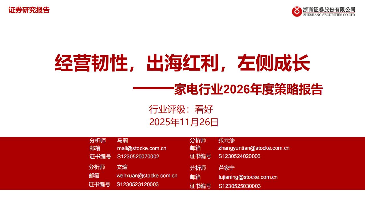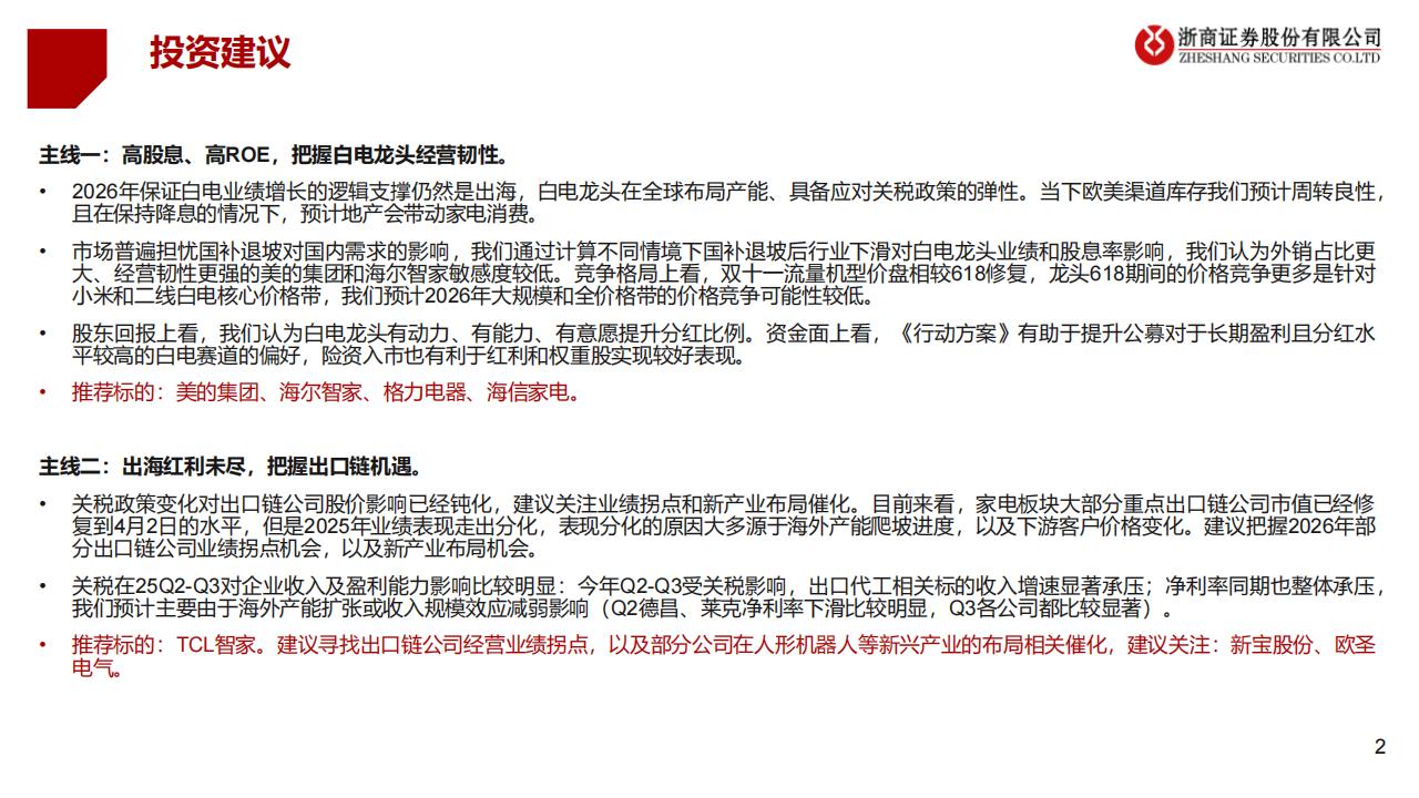 ·2026年保证白电业绩增长的逻辑支撑仍然是出海,白电龙头在全球布局产能、具备应对关税政策的弹性。当下欧美渠道库存我们预计周转良性,