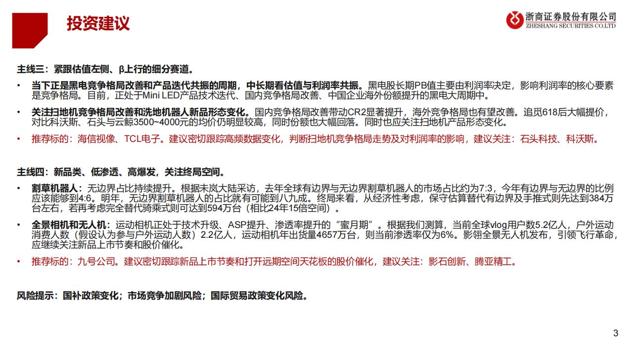 ·推荐标的:海信视像、TCL电子。建议密切跟踪高频数据变化,判断扫地机竞争格局走势及对利润率的影响,建议关注:石头科技、科沃斯。