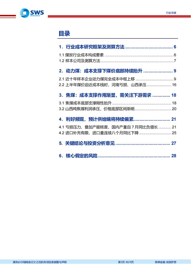 ● 投资分析意见:煤炭行业成本刚性抬升,预计将推升煤价中枢,我们推荐稳定经营高分