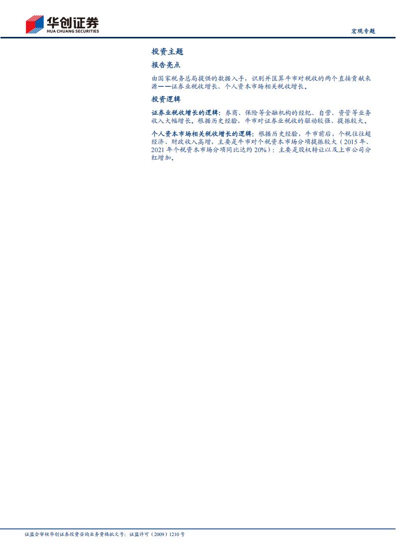 由国家税务总局提供的数据入手,识别并匡算牛市对税收的两个直接贡献来源——证券业税收增长、个人资本市场相关税收增长。