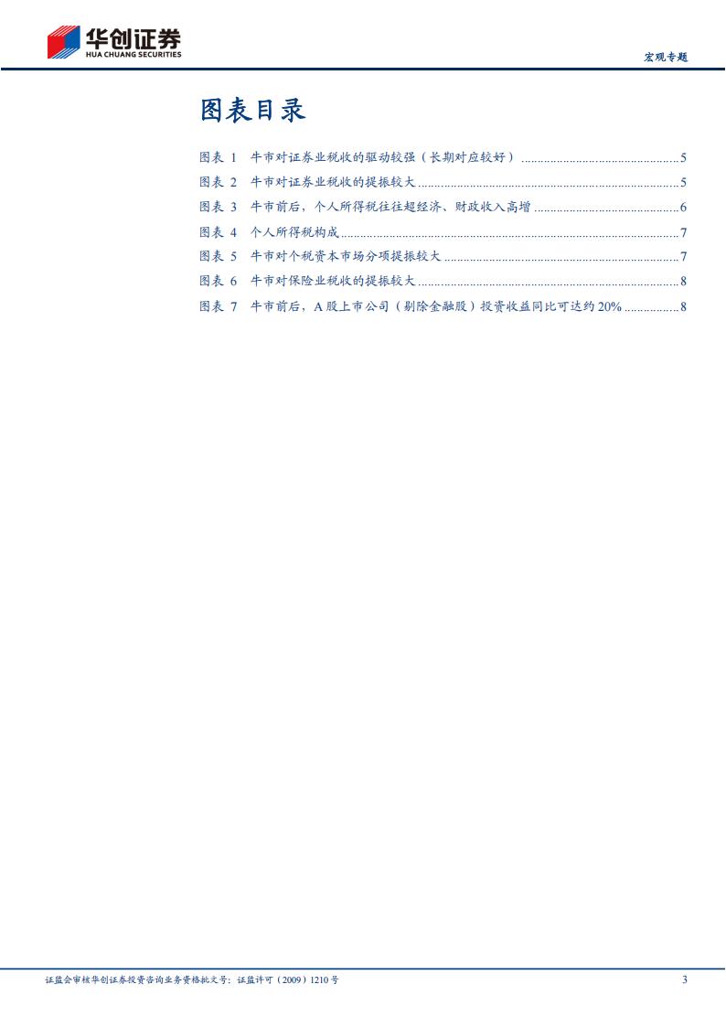 近期税收超经济高增,牛市发挥了积极拉动作用:据国家税务总局税收科学研究所所长黄立新,“交易活跃不仅直接带动资本市场服务业税收大幅增长,还带动与资本市场相关的行业税收增长,如7、8月份证券业税收增长均超过70%、保险业税收增长则超过10%;同时,企业投资收益、股票分红增加,也带动企业所得税和个人所得税增收”(详见报告《税收高增的非经济因素》)。