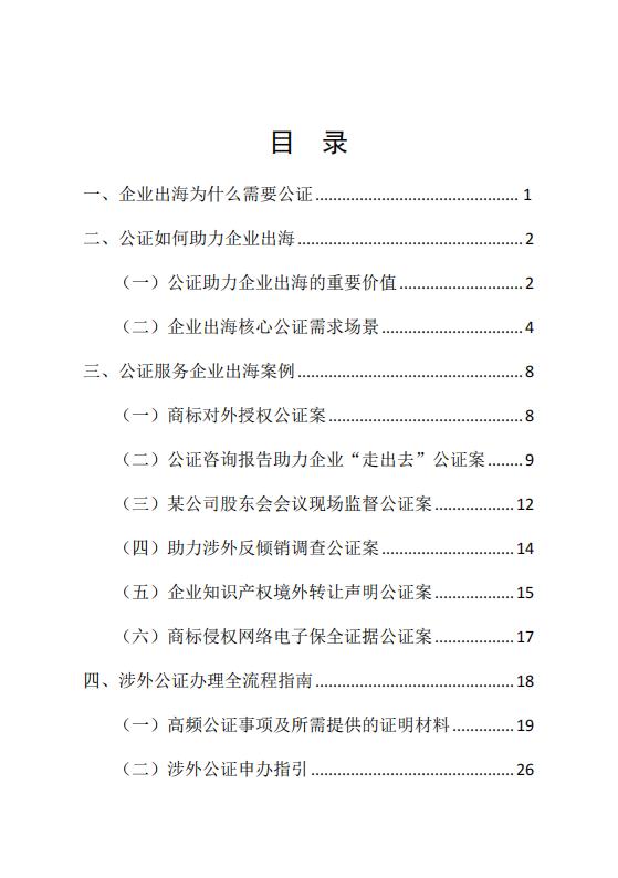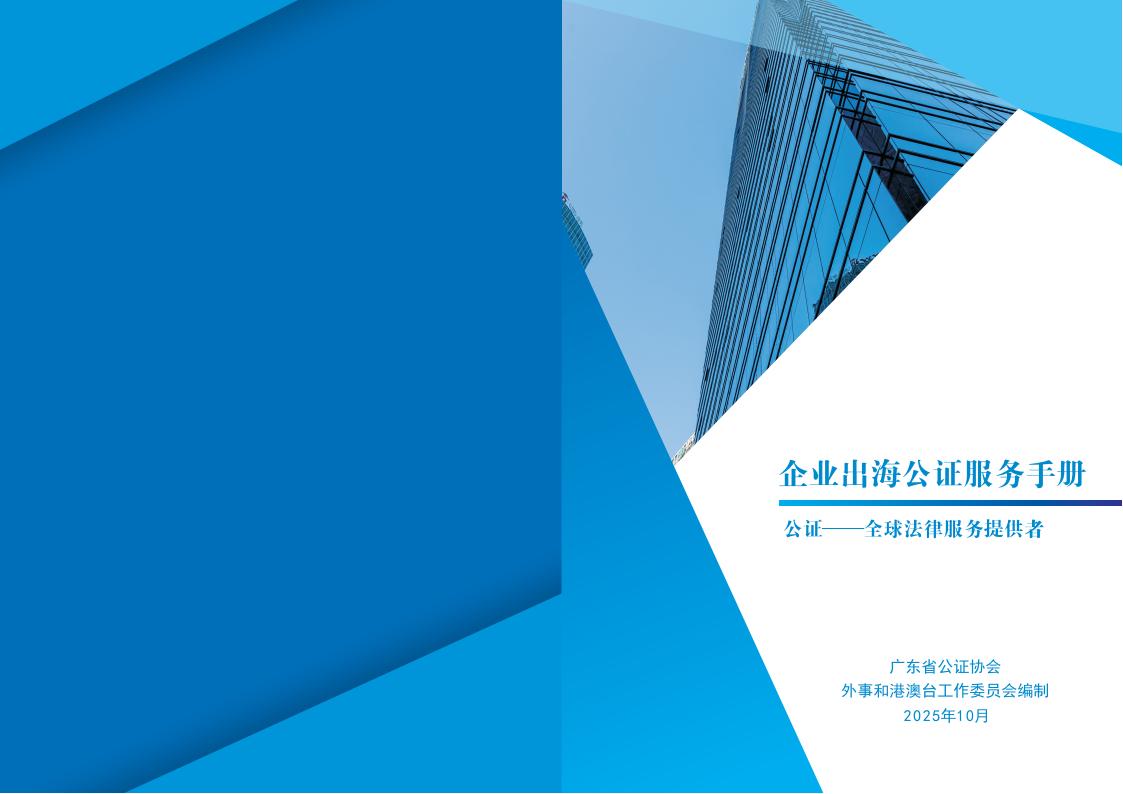 本手册旨在系统梳理企业出海常用的公证场景、公证事项,明确办理流程、材料要求及注意事项,为您提供规范、精准、全面的公证服务指引,帮助您有效运用公证法律工具防范法律风险、降低交易成本、提升国际竞争力。同时期望通过本手册的编撰与推广,进一步畅通公证服务企业出海渠道,助力广东企业在更高水平上参与国际合作与竞争,为推动我省经济高质量发展、服务国家对外开放大局贡献公证力量。