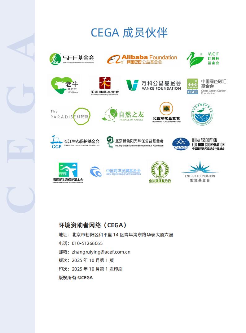 该报告旨在擘画今后五年(2026-2030)社会力量在气候及生态环境领域的行动纲领和实施策略,凝聚民间力量以有效衔接政府、企业及上游资助者等相关各方的策略行动,为国内国际气候及生态环境治理贡献民间力量。我们采取自下而上、自上而下的方法相结合,聚拢气候慈善伙伴和专家学者的集体智慧精心撰写出这份报告。我们这里所说的“气候慈善”是气候及生态环境慈善的简称;我们所说的气候慈善伙伴,是包括CEGA成员伙伴在内的一群愿意运用慈善力量为国家及全球气候治理贡献力量的机构伙伴。报告承载着我们这群人的思考,力量与担当。这是一次忐忑而又大胆的尝试,报告并不完美,但我们希望报告可以给大家以启发,思考我们共同的未来,以共同的行动实现美丽中国的宏愿!