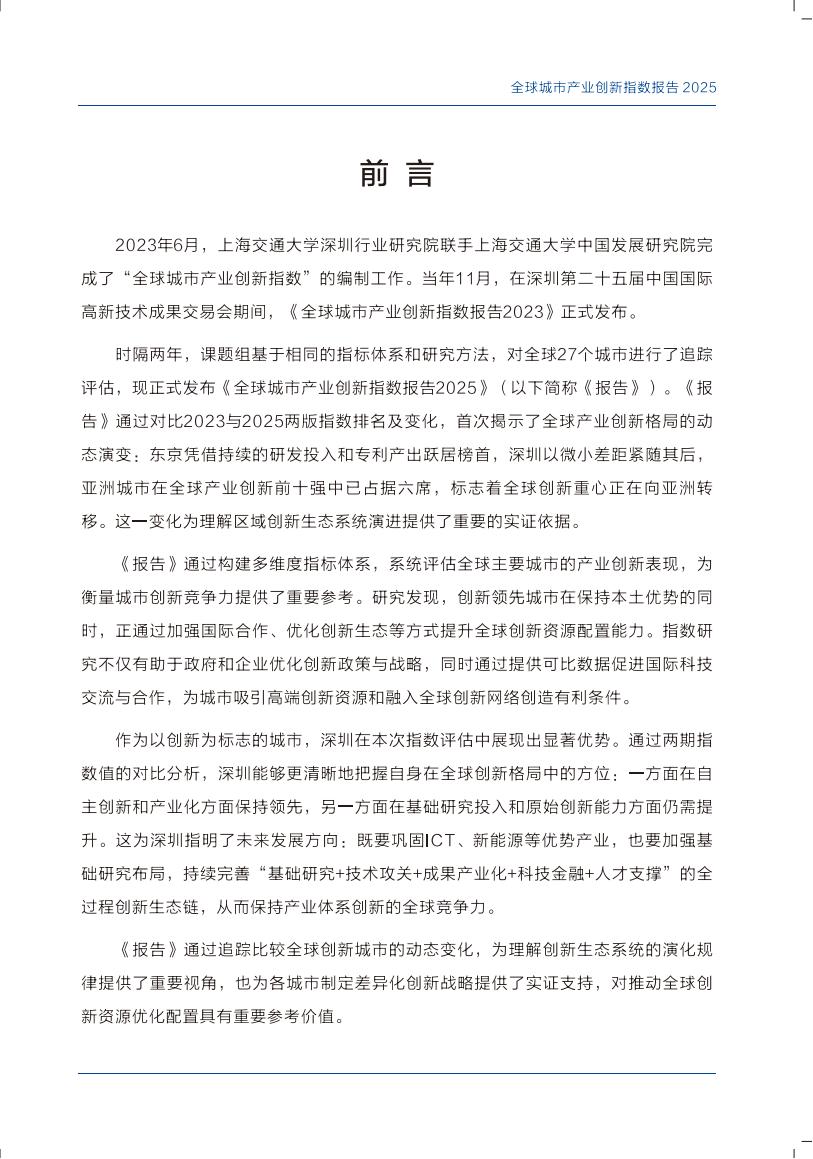 2023年6月,上海交通大学深圳行业研究院联手上海交通大学中国发展研究院完成了“全球城市产业创新指数”的编制工作。当年11月,在深圳第二十五届中国国际高新技术成果交易会期间,《全球城市产业创新指数报告2023》正式发布。