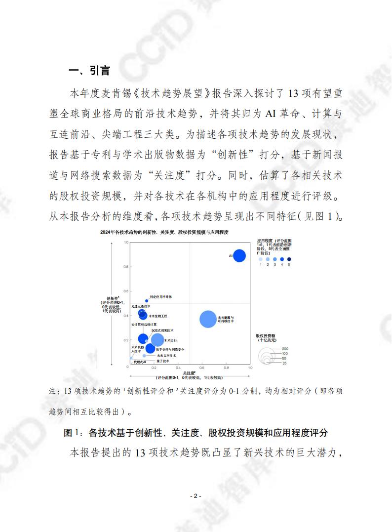 本报告提出的13项技术趋势既凸显了新兴技术的巨大潜力,也揭示了在AI驱动下实现战略协同的必要性。图2展现了不同