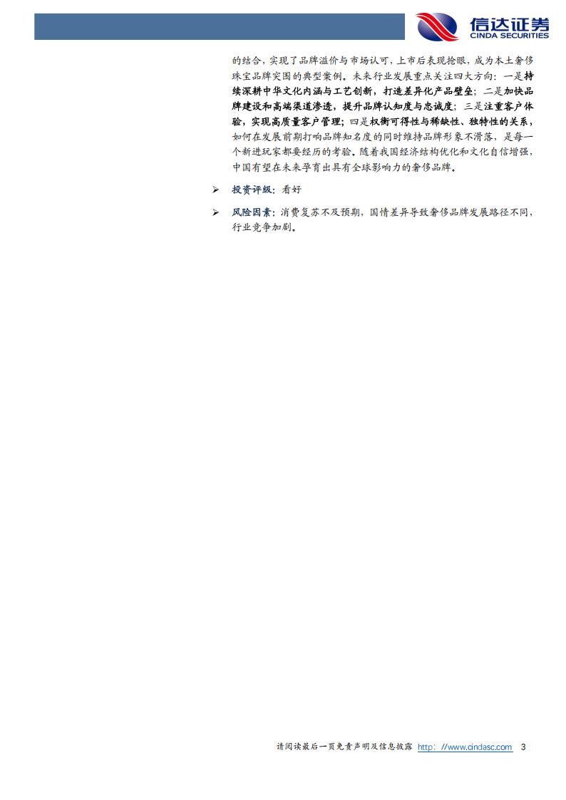 风险因素:消费复苏不及预期,国情差异导致奢侈品牌发展路径不同,行业竞争加剧。