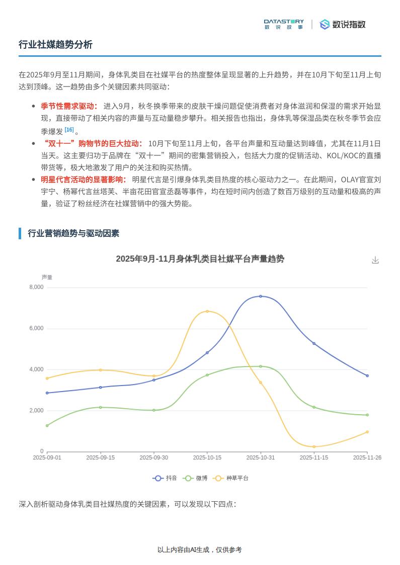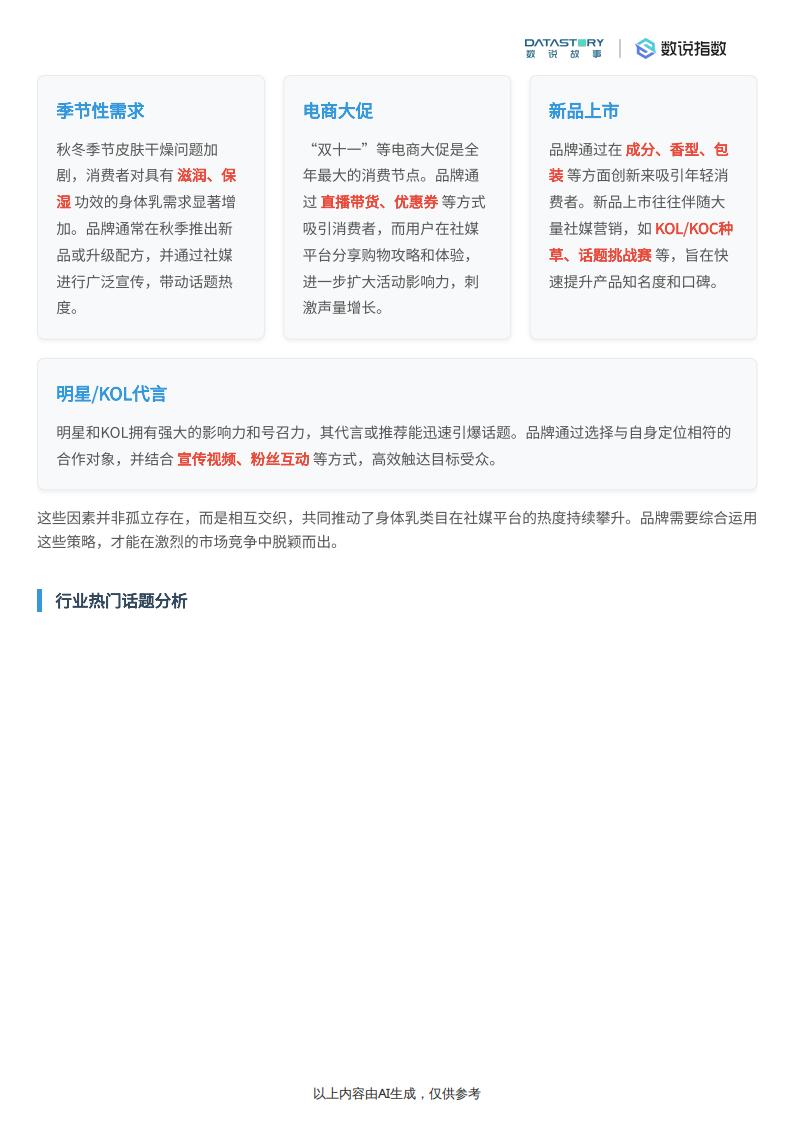 现,直接带动了相关内容的声量与互动量稳步攀升。相关报告也指出,身体乳等保湿品类在秋冬季节会应季爆发[16]。