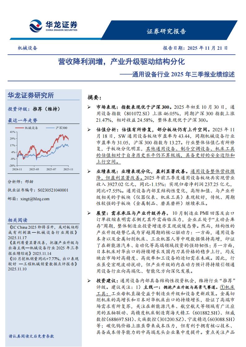 通用设备行业2025年三季报业绩综述:营收降利润增,产业升级驱动结构分化.pdf下载