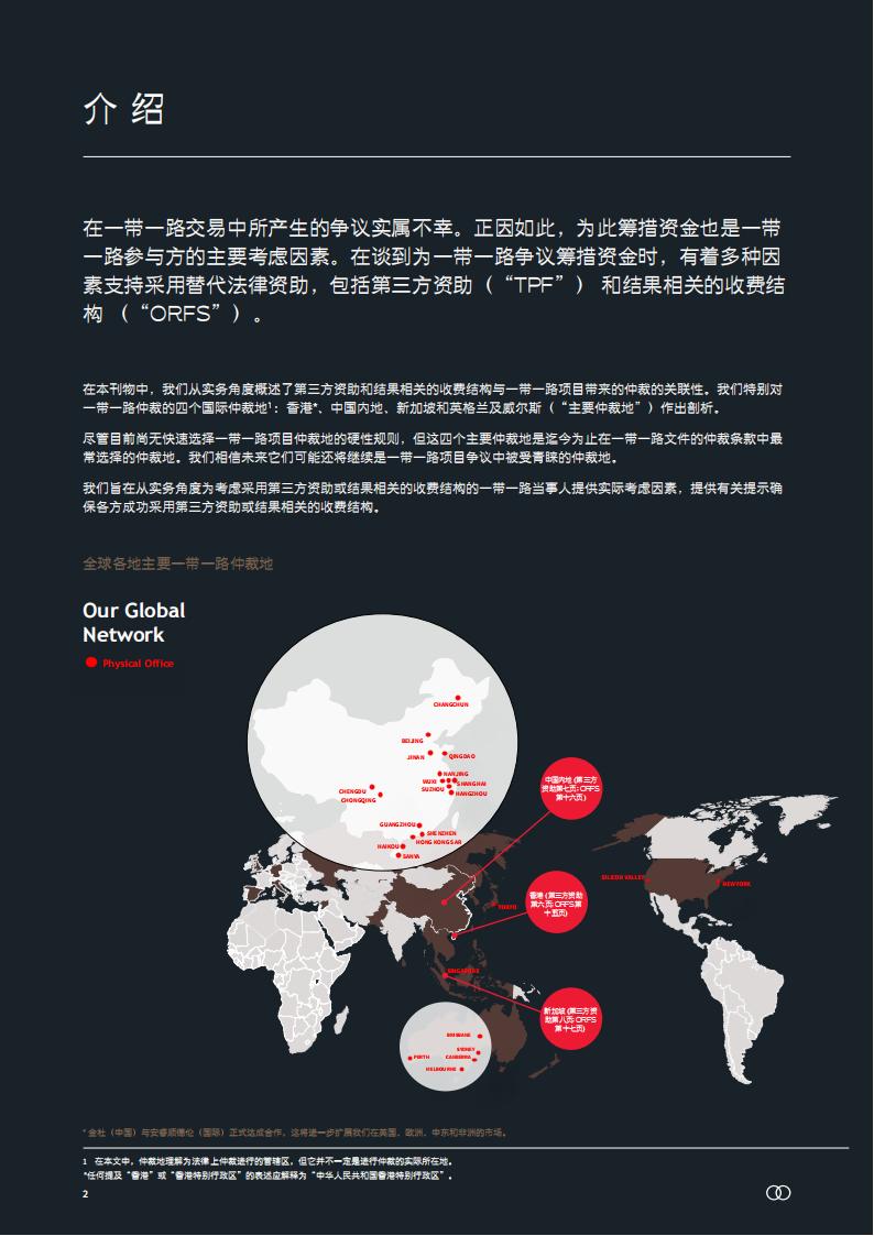 在本刊物中,我们从实务角度概述了第三方资助和结果相关的收费结构与一带一路项目带来的仲裁的关联性。我们特别对一带一路仲裁的四个国际仲裁地:香港*、中国内地、新加坡和英格兰及威尔斯(“主要仲裁地”)作出剖析。