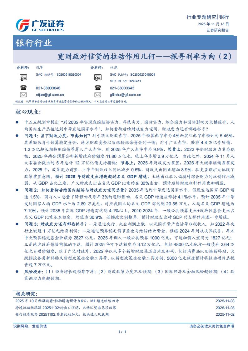 速1.5%、国内人口总量下降影响及每年3%的通胀影响,名义GDP增速应维持4.1%水平,预计2035年中等发达国家人均GDP水平为2.89万美元,对应我国人均名义GDP需达到20.55万元,人均名义GDP增速为7.19%,预计2035年实际GDP增速需达到4.1%以上。2010-2024年,一般公共预算支出+政府性基金支出占名义GDP比重基本稳定,均值为30.9%,若按此比例推算,预计财政支出对GDP的支撑作用进一步增强。